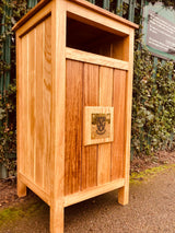 Handmade hardwood recycling bins add durability and eco-friendly elegance to golf courses, encouraging responsible recycling.
