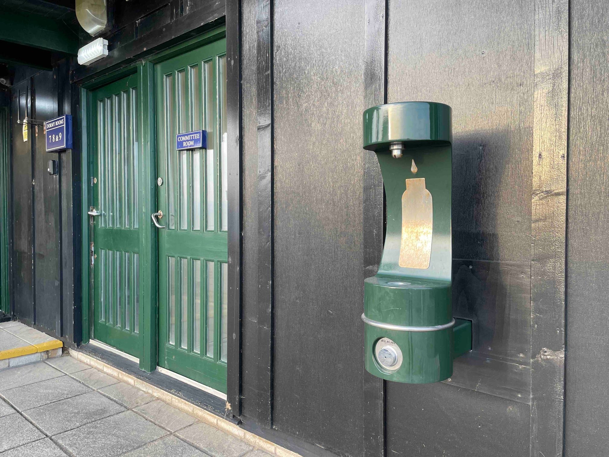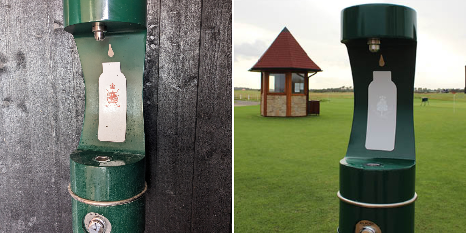 Typically mounted aside a clubhouse or halfway house wall, utilising a mains water connection from the inside of a building to provide refills and drinking water.
